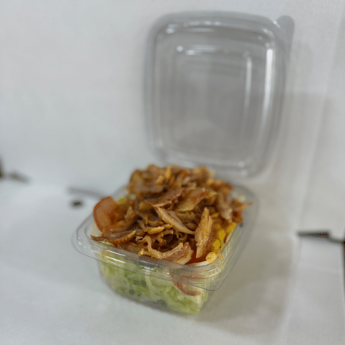 Sla, tomaten, wortel, maïs, olijven, komkommer, ui.